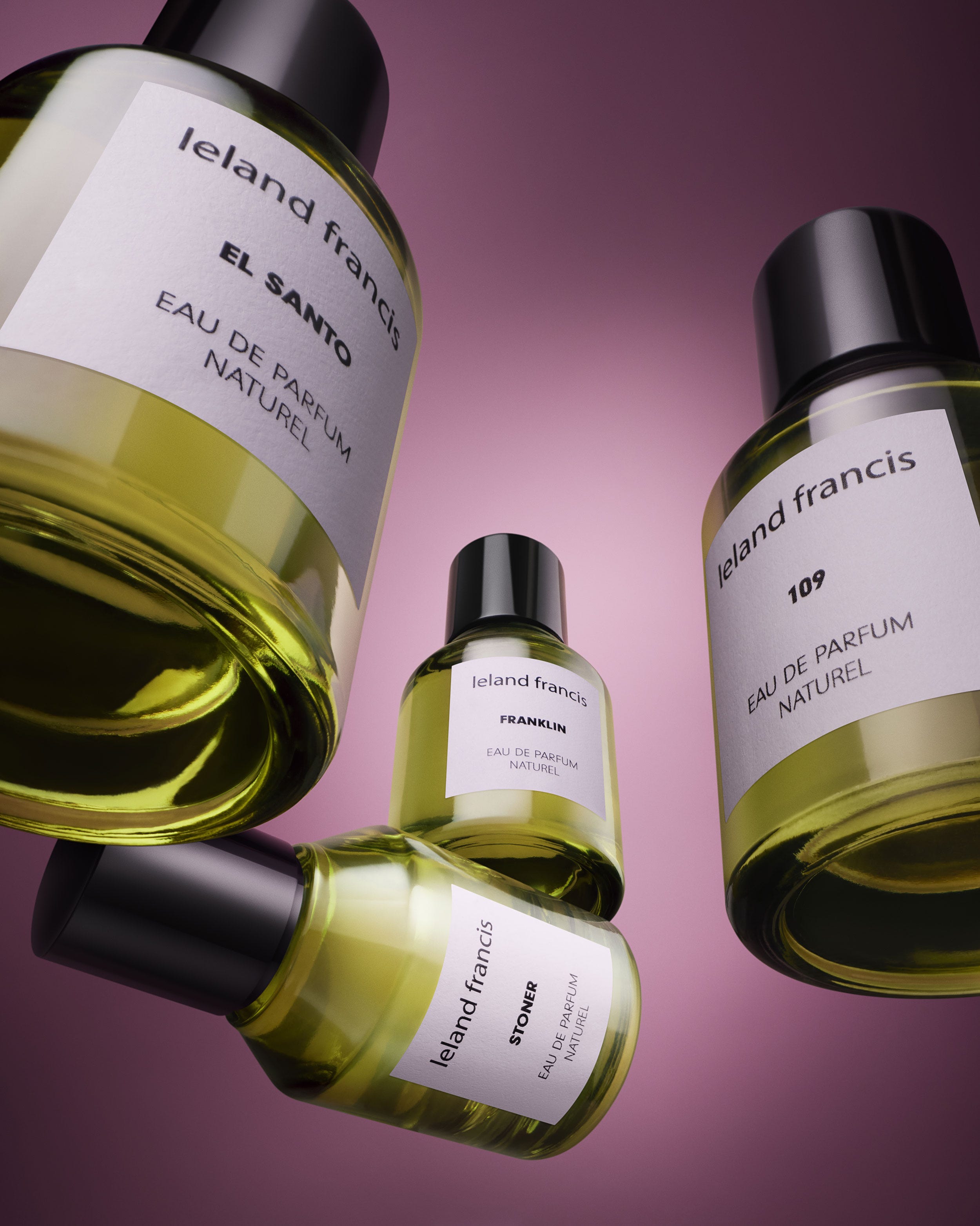 When COVID hit, makeup work vanished overnight. I could have panicked—and I did, for a bit—but then I focused. I used that time to study, to test, to expand. I taught myself how to pour candles by hand, how to blend and filter perfume. I failed a lot. I kept going. That’s when the Leland Francis fragrance collection truly began to bloom.